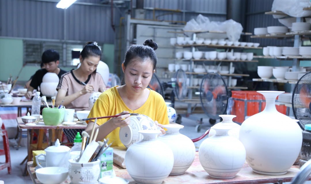 Nghệ nhân vẽ thủ công trên sản phẩm